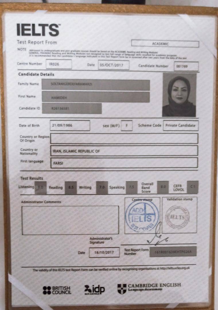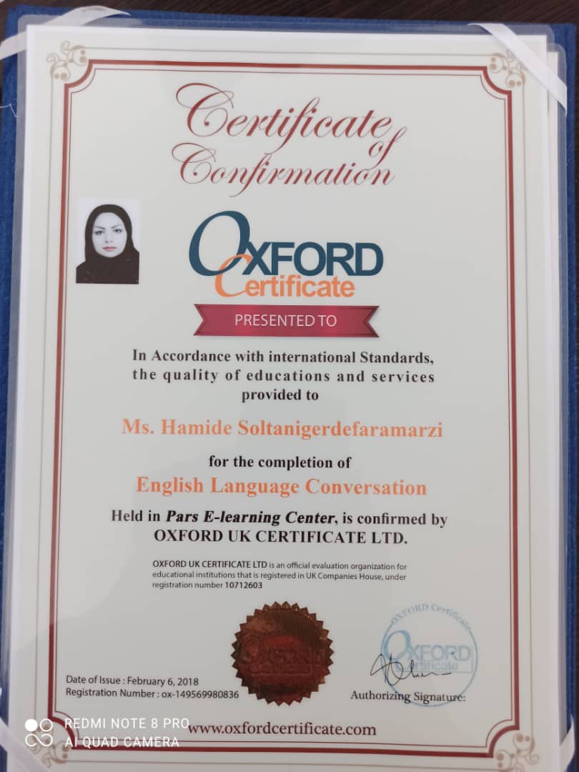 حمیده سلطانی هستم مدرس بین المللی زبان انگلیسی، ۱۴سال سابقه اموزش در سطوح مختلف دارم. کارشناس ارشد اموزش زبان انگلیسی، دارای گواهینامه پایان دوره زبان انگلیسی از EDUانگلستان و آیلتس با نمره اورال۸ بنده معتقد هستم هر علم جدید از جمله زبان انگلیسی را باید حرفه ای و اصولی یادگرفت، و به عنوان مدرس این موضوع همیشه سر لوحه کارم بوده تا زبان اموزانم به راحتی شیرینی یادگیری زبان انگلیسی را تجربه کنند. افتخارات گواهینامه پایان دوره آمادگی آزمون تافل از کانون زبان ایران واحد یزد گواهینامه پایان دوره مکالمه زبان انگلیسی به مدت ۶۰ساعت با کسب امتیاز عالی از بنیاد آموزش مجازی و الکترونیکی ایرانیان گواهینامه بین المللی پایان دوره مکالمه زبان انگلیسی با تاییدیه آکسفورد ال تی دی (CERTIFICATE IN ENGLISH LANGUAGE CONVERSATION CONFIRMED BY OXFORD UK CERTIFICATE LTD) گواهینامه پایان دوره آموزشی سطح پیشرفته زبان انگلیسی (Summit ۲B ADV) از انتشارات غزال جوان با تایید اعتبار از سوی انتشارات پیرسون لانگمن(Pearson Longman) گواهینامه بین المللی پایان دوره آموزشی زبان انگلیسی تخصصی بازاریابی از آکسفورد انگلستان: ( CERTICATE IN PROFESSIONAL ENGLISH FOR MARKETING By OXFORD.EDU ) گواهینامه بین المللی پایان دوره آموزشی آموزش زبان انگلیسی از آکسفورد انگلستان: (CERTICATE IN ENGLISH LANGUAGE TRAINING By OXFORD.EDU ) پایان دوره فن ترجمه۱ و آنالیز مقالات و متون انگلیسی در موسسه نام آوران آموخته با تدریس دکتر رامین آموخته عضو هیئت علمی دانشگاه تهران و رکورد دار گینس در فن ترجمه پایان دوره فن ترجمه۲ و آنالیز مقالات و متون انگلیسی در موسسه نام آوران آموخته با تدریس دکتر رامین رحمانی عضو هیئت علمی دانشگاه تهران پایان دوره ساختارهای پیچیده انگلیسی(COLLOCATION) به مدت ۳۰ ساعت در موسسه نام آوران آموخته با تدریس دکتر رامین رحمانی عضو هیئت علمی دانشگاه تهران گواهینامه دوره آموزشی مترجمی زبان انگلیسی پیشرفته(QAL) به مدت ۴۰ ساعت از آکادمی پارس گواهینامه بین المللی دوره روش تدریس کتاب های انگلیسی BACKPACK برای سطوح نوجوانان از انشارات Pearson Longman گواهینامه پایان دوره فن بیان (COMMUNICATION CERTIFICATE) ،برگزار کننده شرکت طرح و اندیشه بهساز ملت، مدرس: رضا رنجبر. گواهینامه حضور در کارگاه آموزشی معاملات و تسهیلات اداری به مدت ۱۰ساعت و کسب حد نصاب امتیاز پایان دوره (شرکت طرح و اندیشه بهساز ملت) گواهینامه حضور در دومین کنفرانس بین المللی مدیریت، حسابداری و افتصاد به مدت ۹ ساعت در دانشگاه تهران و ثبت مقاله با عنوان توانمندسازی و اثرات آن در بهبود عملکرد سازمان ها ثبت برند ELC ( ENGLISH LANGUAGE COMMUNICATION) و تایید نام حمیده سلطانی گردفرامرزی به عنوان مبتکر این سبک آموزشی منتخب دانشجوی نمونه در مقطع کارشناسی ارشد و کسب رتبه اول معدل در این دوره (۱۳۹۶) گواهینامه پایان دوره آموزشی MICROSOFT OFFICE در شاخه WORDاز سازمان فنی و حرفه ای استان یزد گواهینامه پایان دوره آموزشی MICROSOFT OFFICE در شاخه POWER POINTاز سازمان فنی و حرفه ای استان یزد کارگاه ها و دوره های آموزشی برگزاری کارگاه چهار ساعته روش تدریس زبان خارجی (TTC) برای دانشجویان مقطع کارشناسی آموزش زبان انگلیسی در دانشگاه آزاد اسلامی یزد برگزاری کارگاه سه روزه روش تدریس زبان خارجی (TTC) به گروه خردسال و نوجوان در آموزشگاه زبان های خارجی آراد یزد برگزاری کارگا