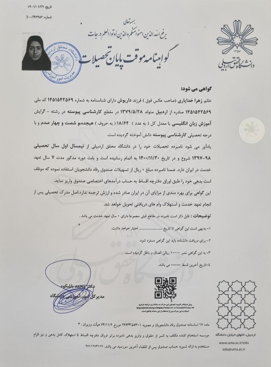 دانشجوی کارشناسی ارشد رشته آموزش زبان انگلیسی چهار سال سابقه تدریس